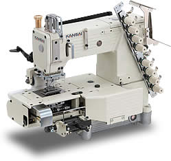 FX - высокоскоростные многоигольные машины (от 4-х до 13-ти игл) двухниточного цепного стежка с цилиндрической платформой и вертикальным перемещением петлителей. Используются для притачивание резинки и настрачивания беек при производстве нижнего белья и спортивной одежды. В различных подклассах могут дополнительно использоваться такие устройства, как дозаторы резинки, пневматические ролики натяжения, автоматическая обрезка ниток. Уникальный механизм обрезки нити, который использует два пневмоцилиндра, обрезает нити невероятно чисто и позволяет повысить производительность. Благодаря цилиндрической платформе, периметр которой 420 мм, можно легко втачивать кольцевую резинку в предварительно закрытый пояс.