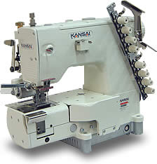 FBX - многоигольная ( от 2-х до 12-ти) игольная машина двухниточного цепного стежка с цилиндрической платформой, нижним и игольным транспортёрами и дополнительным роликом продвижения. Предназначена для изготовления пояса джинсов, рабочей одежды, а также других операций при стачивании тяжёлых тканей. Максимально возможное расстояние между иглами 70 мм.